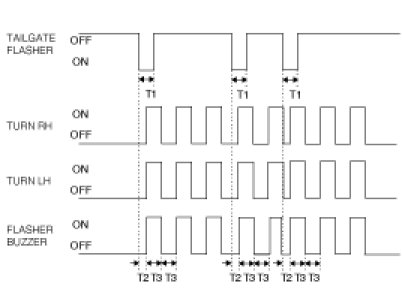 During the FLASHER BUZZER output period, if another input of TAILGATE FLASHER is detected, stop the current output and begin the new output based on the new input of TAILGATE FLASHER.
