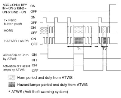 When the system is set off, the alarm sounds and the hazard lamp flash for about 27 seconds or twice until the system is disarmed by unlocking the transmitter.