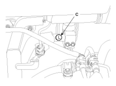 Recovery/Recycling/Charging System (A) to the high-pressure service port (B) and the low-pressure service port (C) as shown, following the equipment manufacturer's instructions.