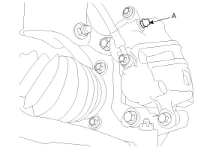 3. Loosen the right-rear brake bleed screw (A) to allow air to escape from the system. Then tighten the bleed screw securely.