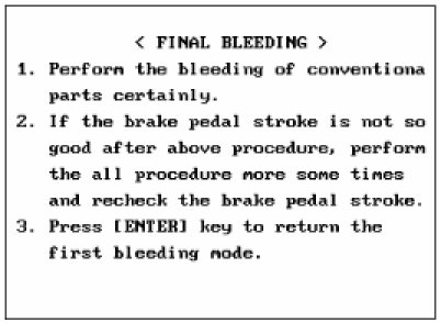 This procedure should be followed to ensure adequate bleeding of air and filling of the ESC unit, brake lines and master cylinder with brake fluid.