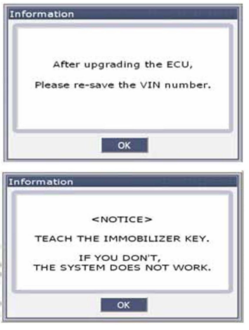 For 2007 Vercruz after the update is completed, perform the VIN writing procedure and/or immobilizer key teaching procedure on the affected vehicles with reference to the "3. ECM ROM ID INFORMATION".