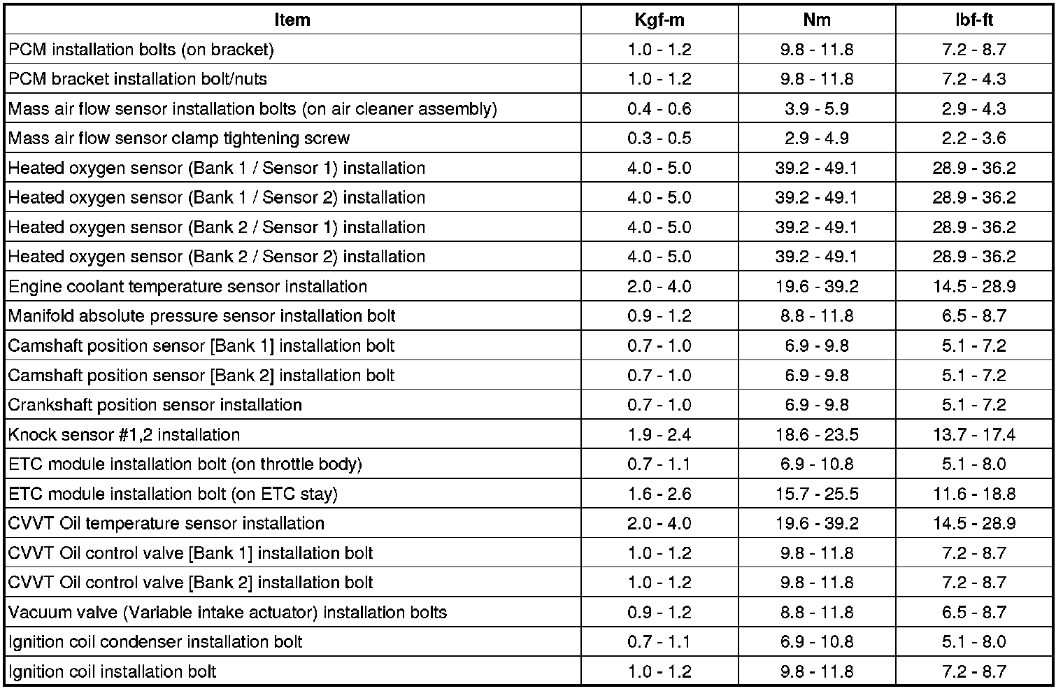 Tightening Torques