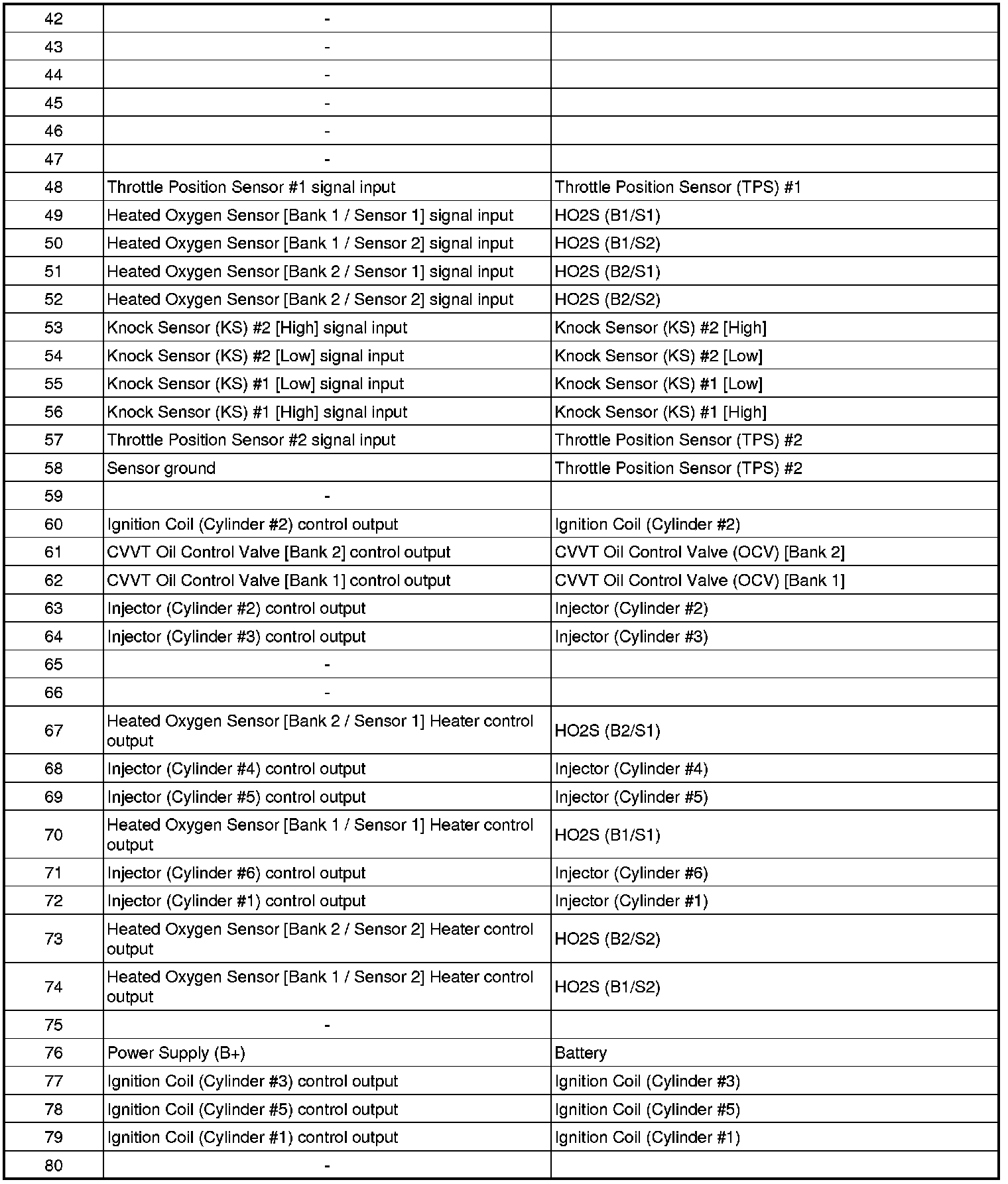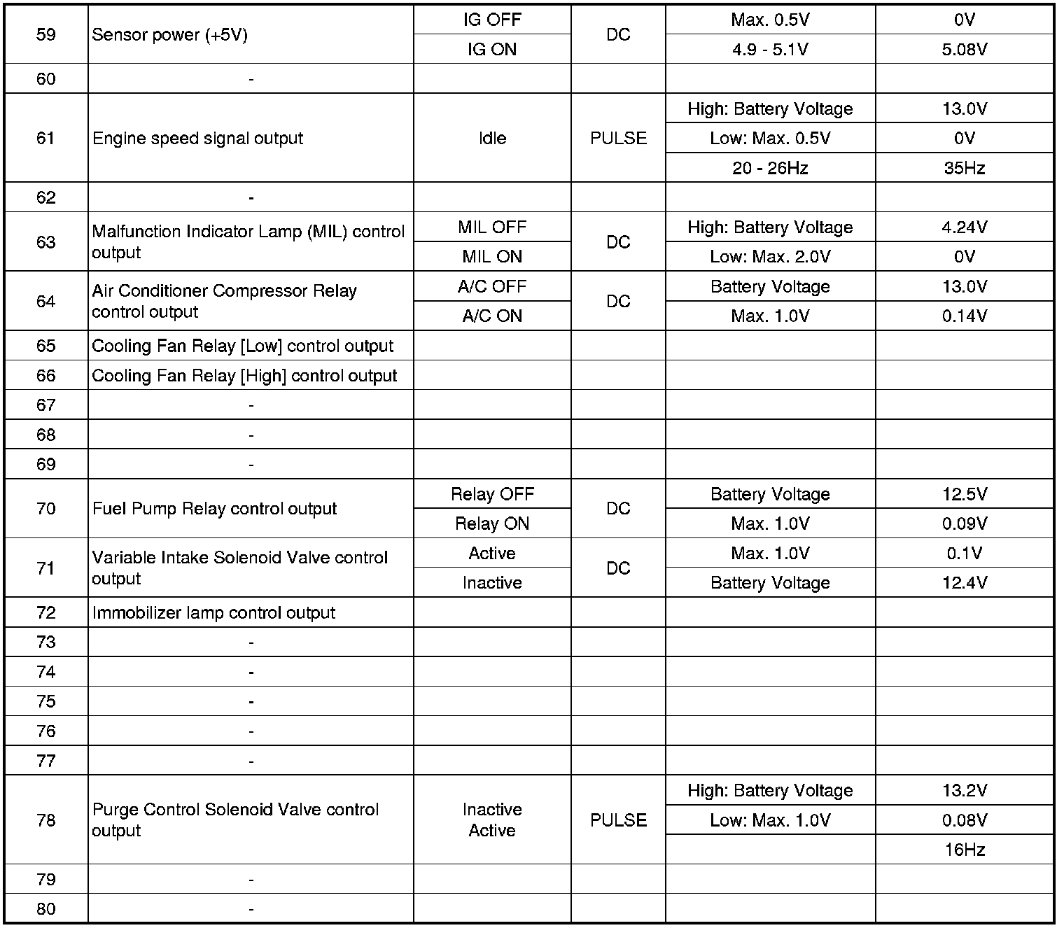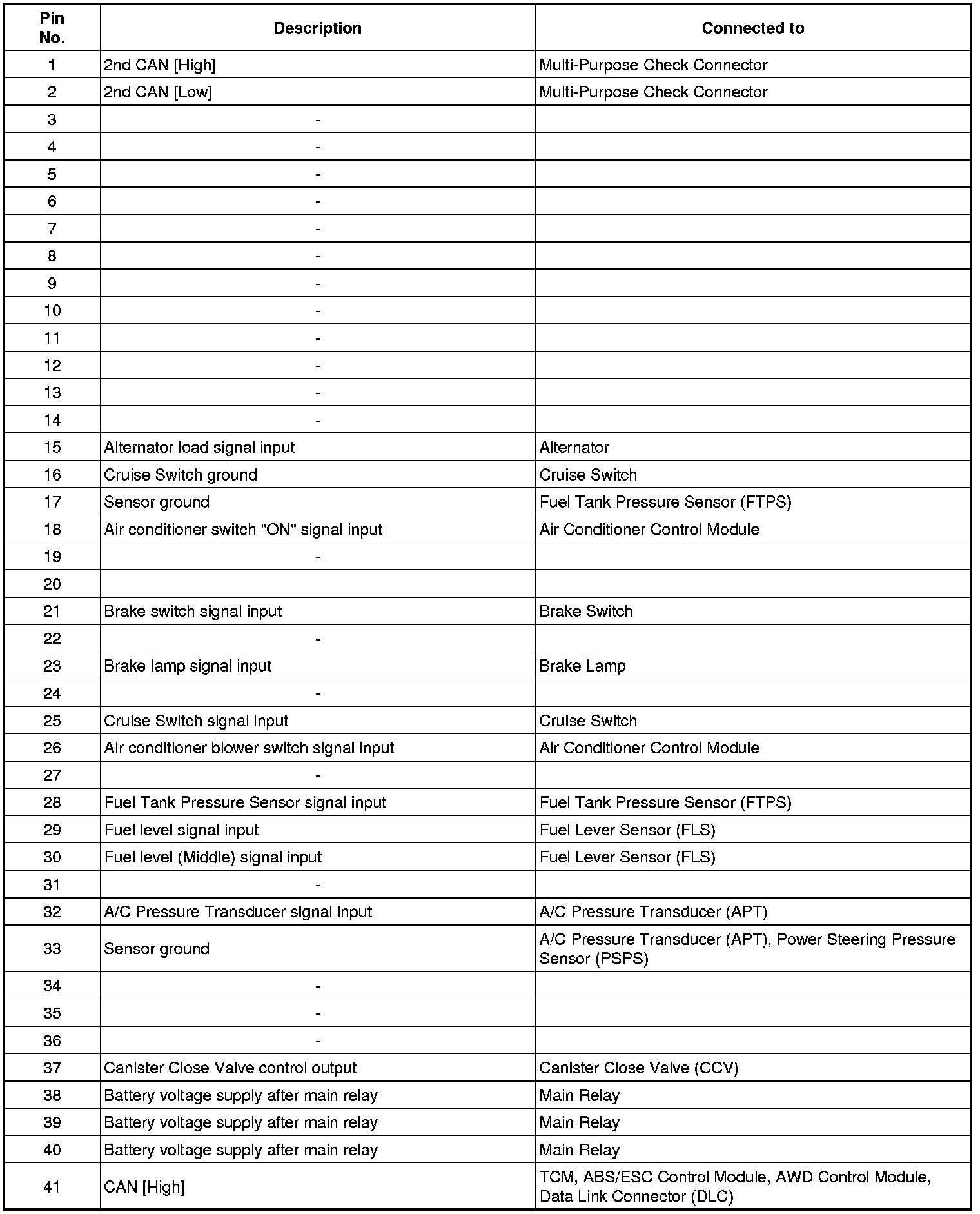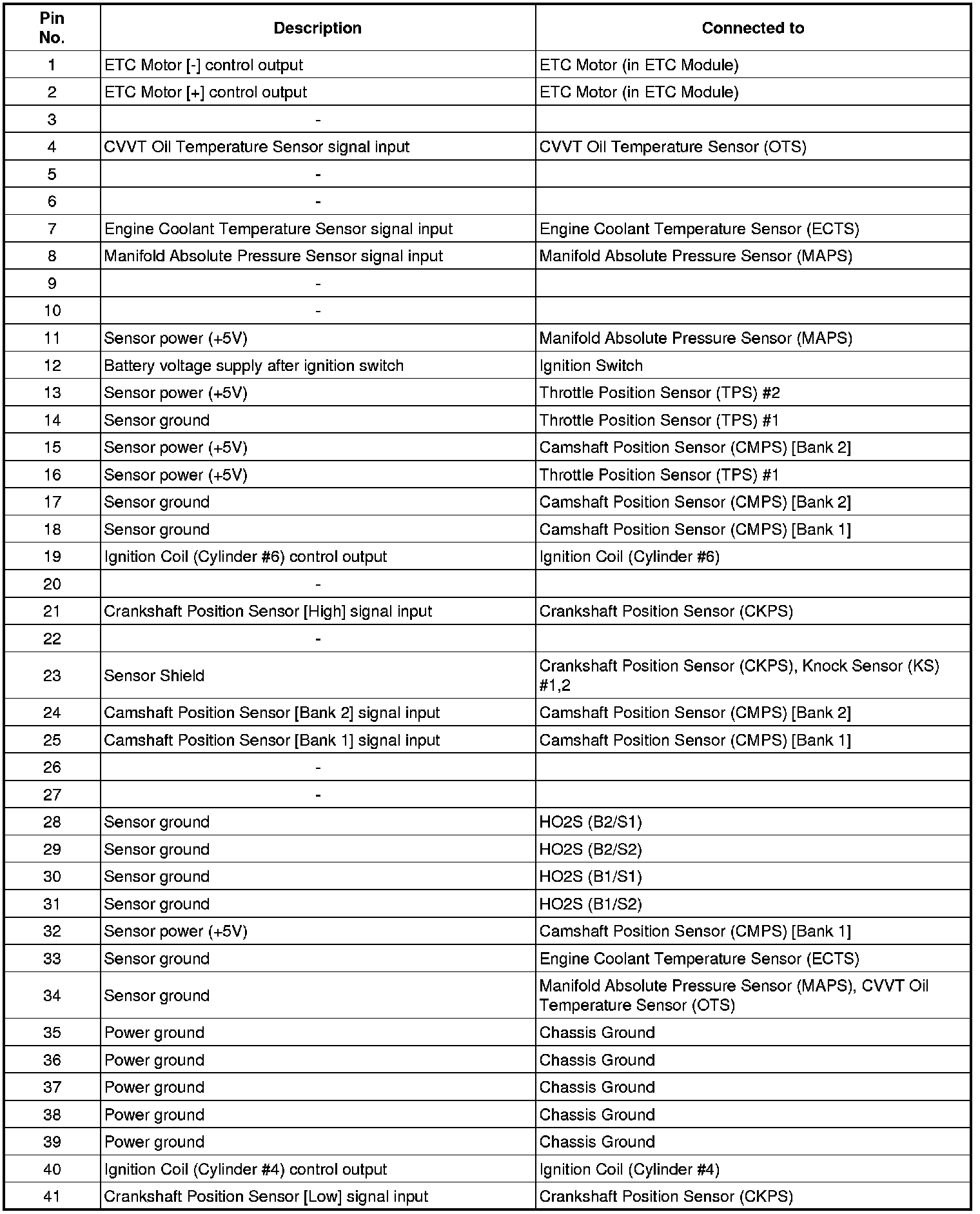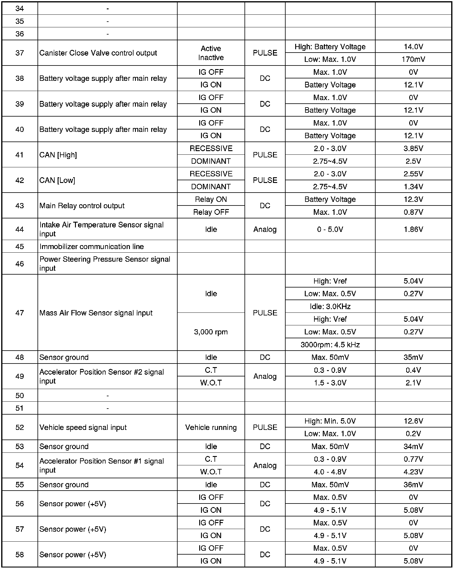 ECM Terminal And Input/output Signal