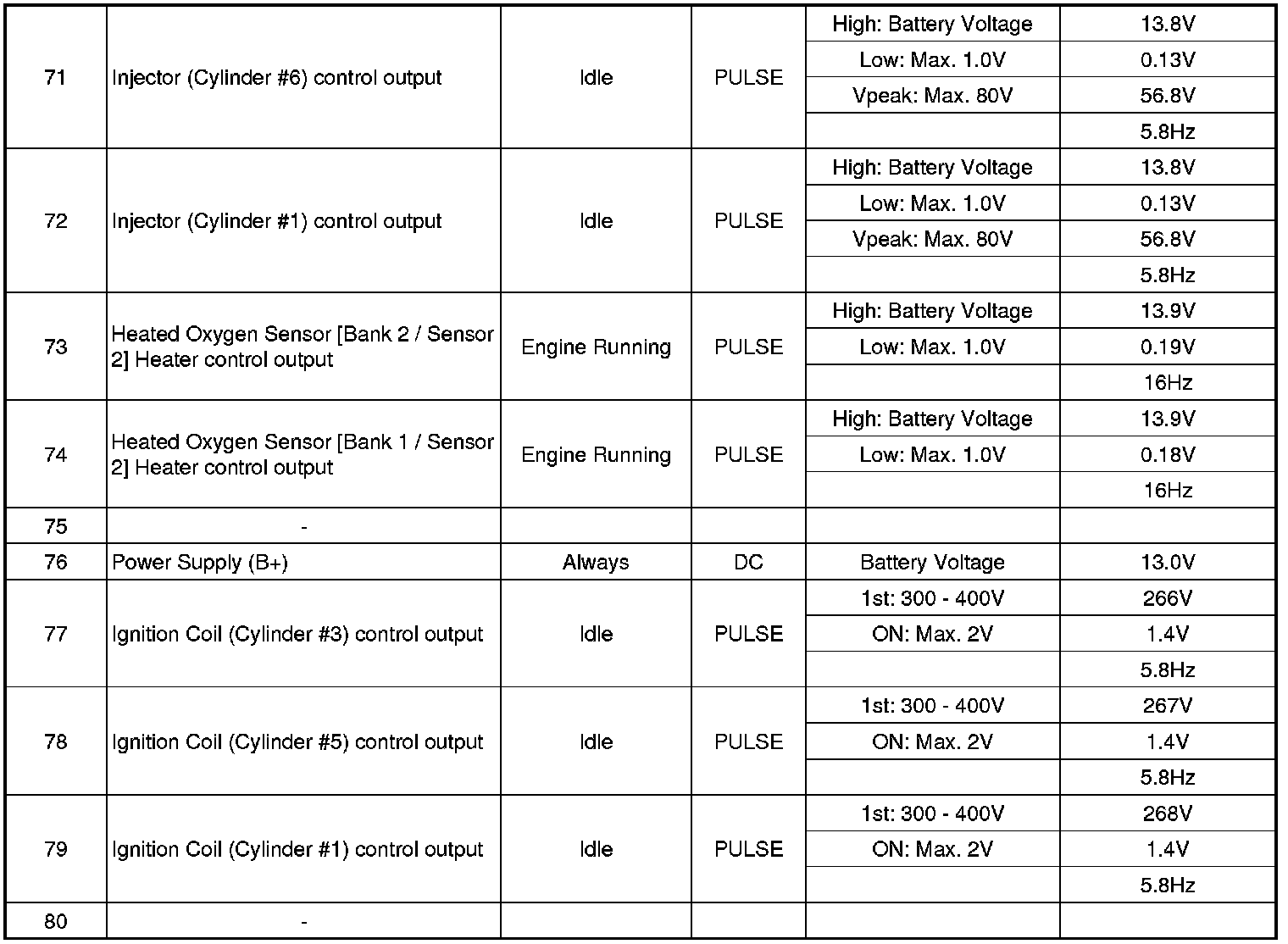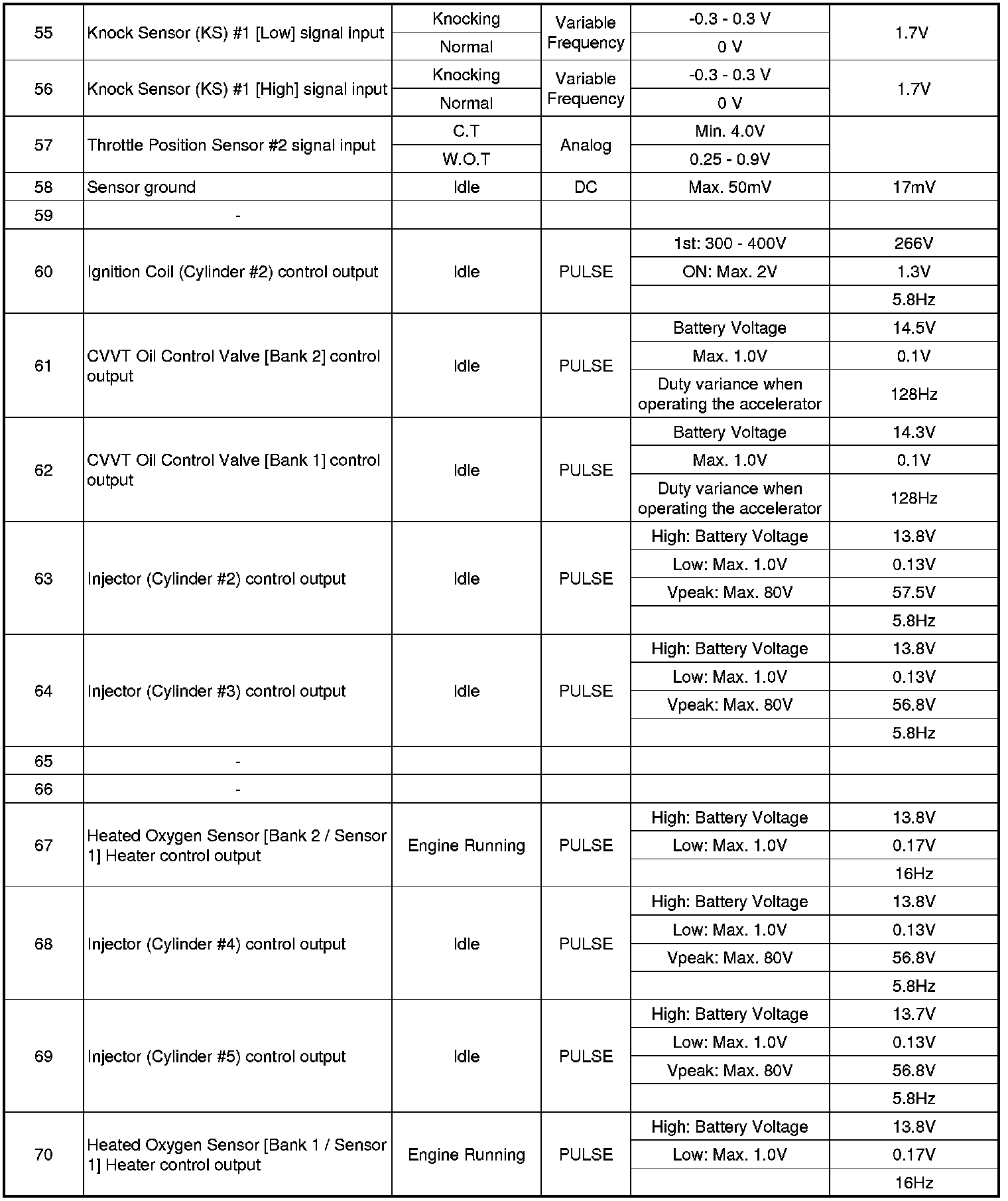 Pinout Values and Diagnostic Parameters