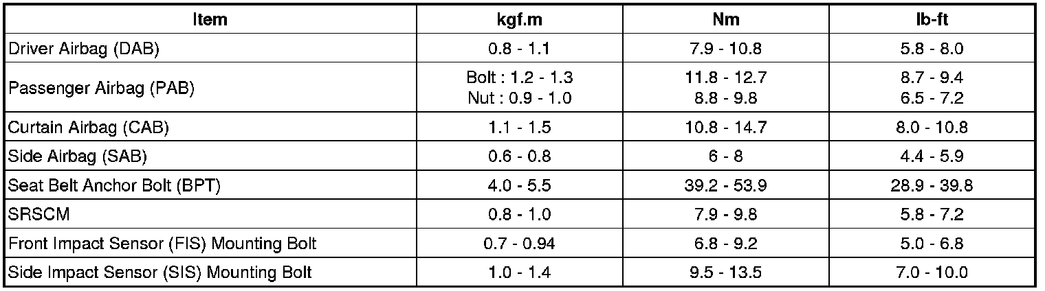 Tightening Torques