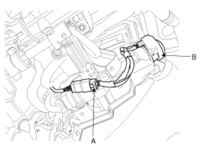 4. Remove the key warning switch and key illumination lamp (B) after disconnecting the 6P connector(A).