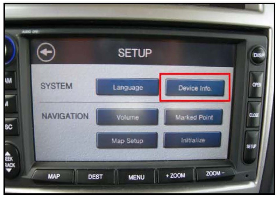 3. Press the DEVICE INFO button in the SETUP screen.