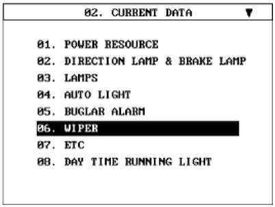 3. Select "CURRENT DATA" and "WIPER".
