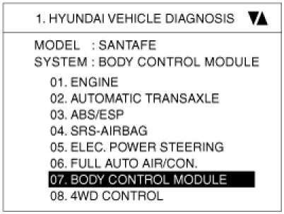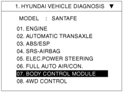 2. Select option "BODY CONTROL MODULE" and press ENTER.