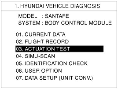 4. If you will check BCM data operation forcefully, select "Actuation test".