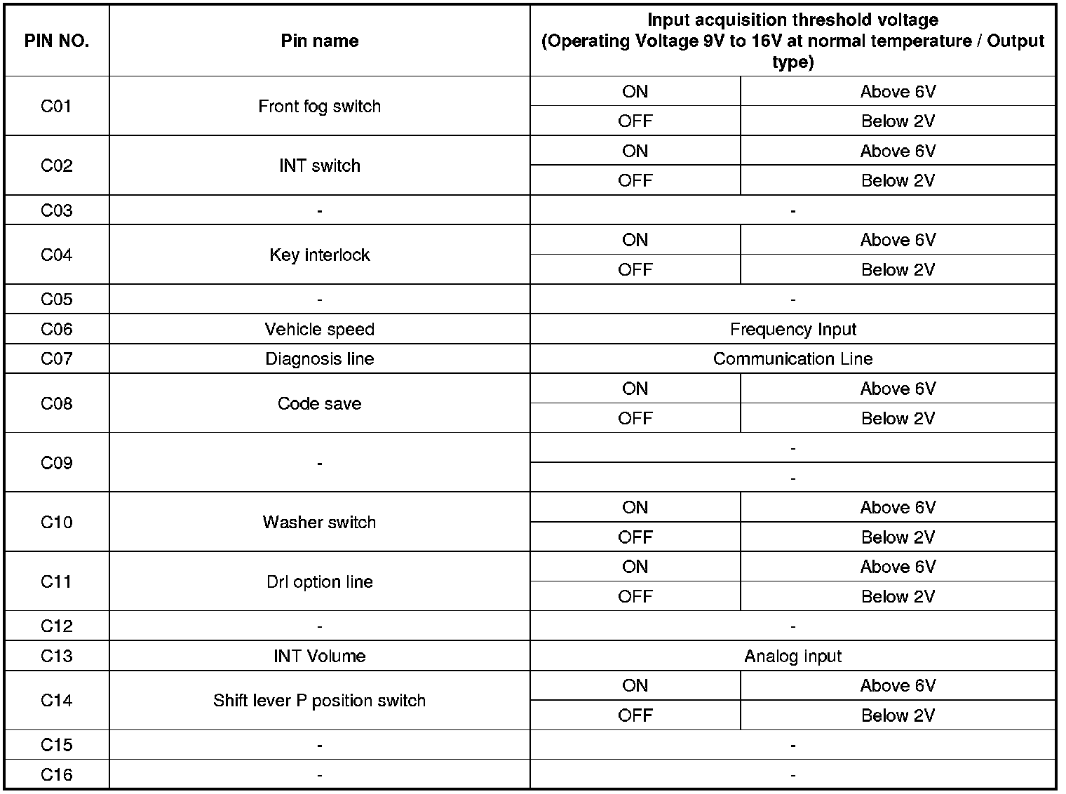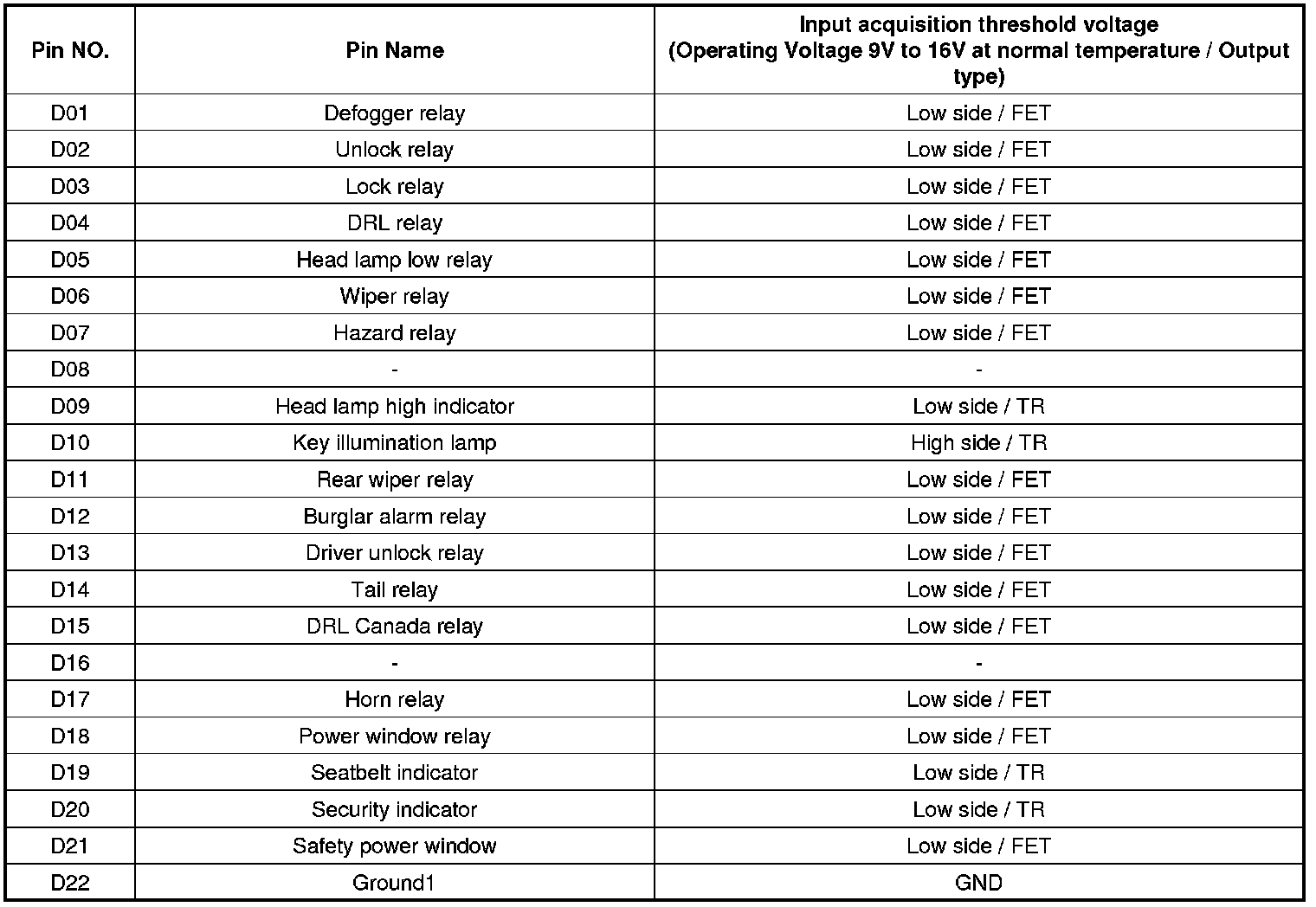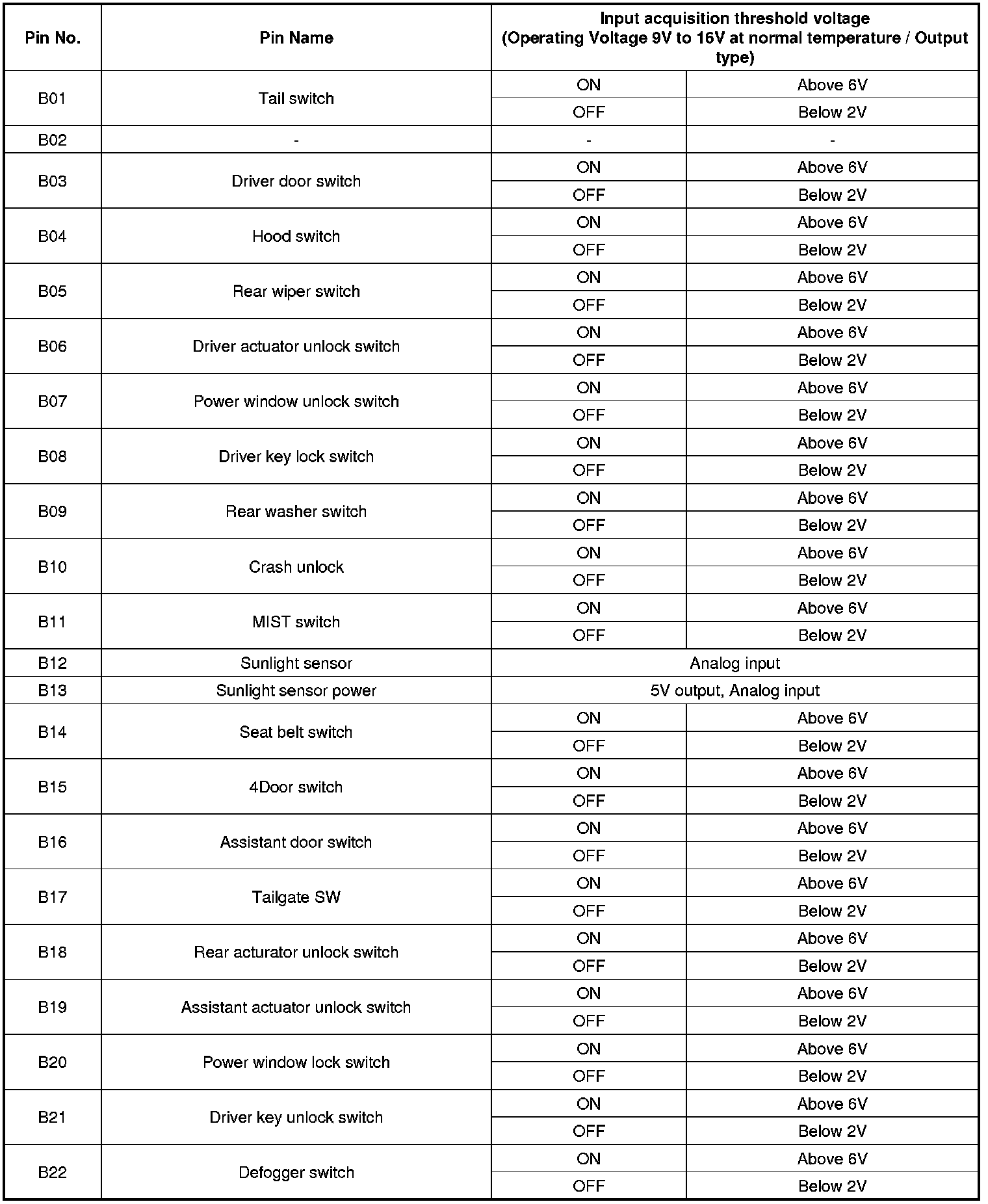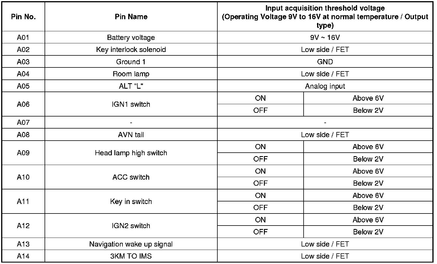 BCM Input/output Specification