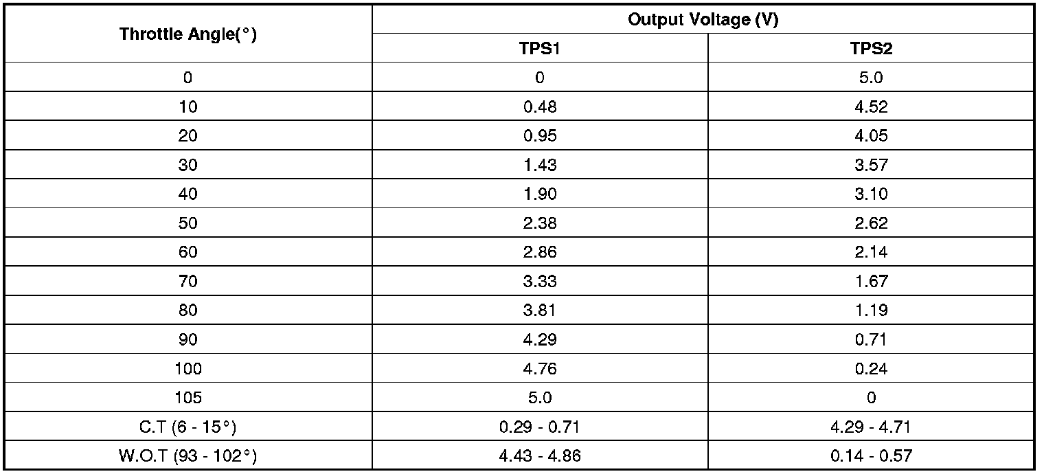Throttle Position Sensor: Specifications