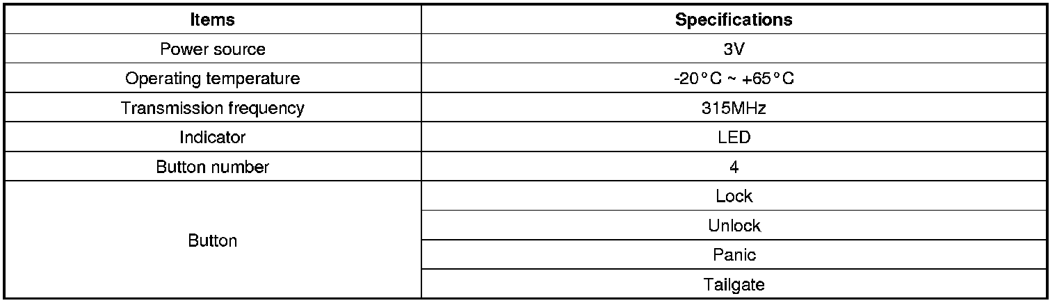 Keyless Entry: Specifications