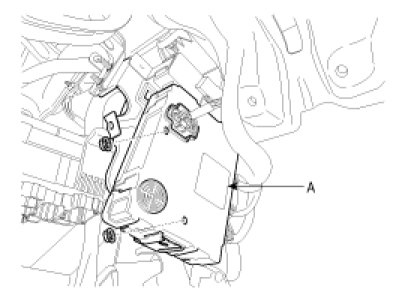 3. Remove the body control module (A) and after loosening 2 nuts and disconnecting connector.