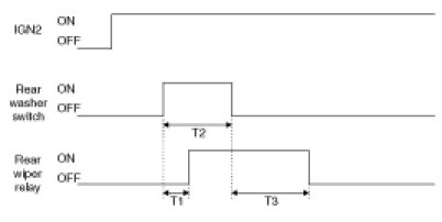 However, Rear Washer SW input generated during operating Rear Wiper RLY is ignored, and received following the operation of Rear Wiper RLY.