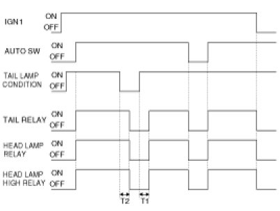 (4) If IGN1 SW is ON, and AUTO LIGHT SW is ON, and in LIGHT OFF state, and in case of AUTO LIGHT SENSOR value is the input value of the LIGHT ON, LIGHT shall be ON after 12 ± 0.2sec.
