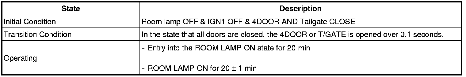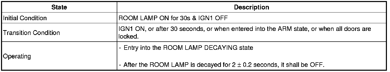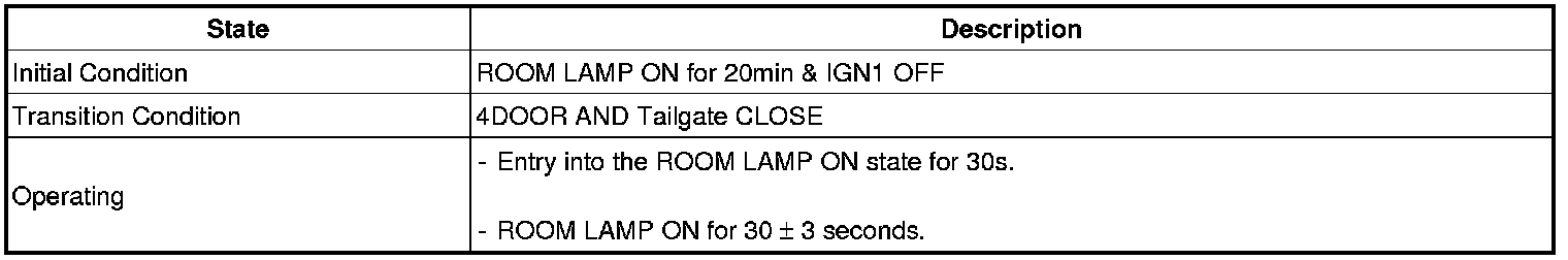 (2) In the (1) state, if the driver's door (or assist's door) is closed, then the IGN Key Hole Illumination shall be OFF after it is in the ON state for 30 seconds.