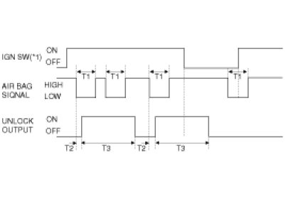 (1) In the IGN KEY ON state, whenever the AIR BAG signal is received, the unlock signal shall be output always.
