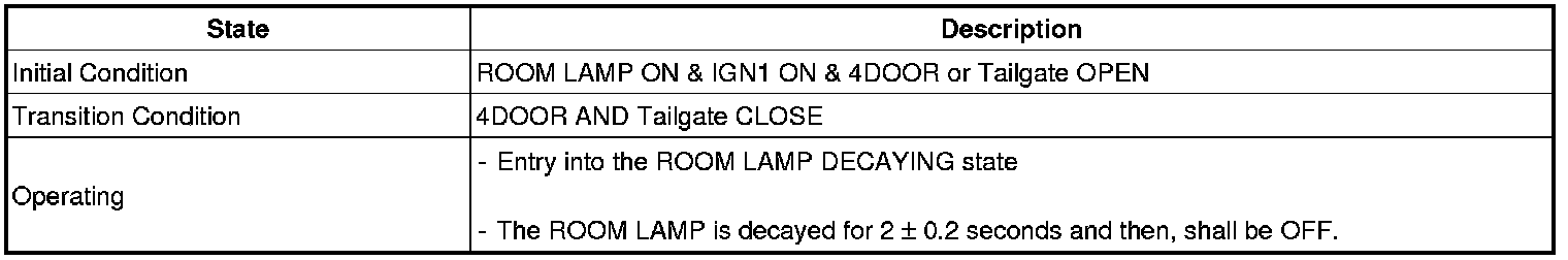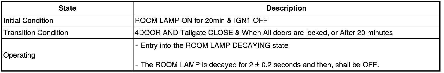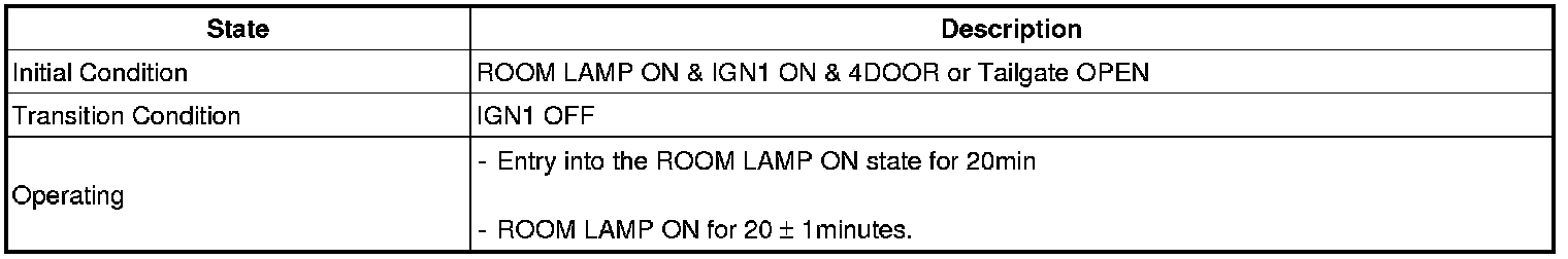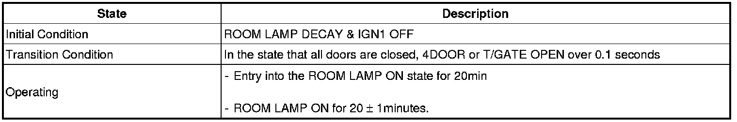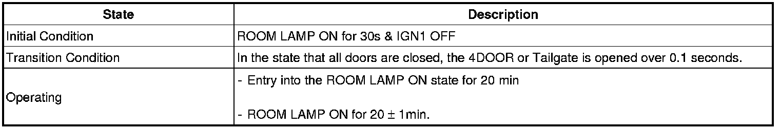 (2) In the (1) state, if the driver's door (or assist's door) is closed, then the IGN Key Hole Illumination shall be OFF after it is in the ON state for 30 seconds.