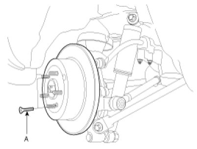 1. Loosen the guide rod bolt (A) and pivot the caliper up out of the way.