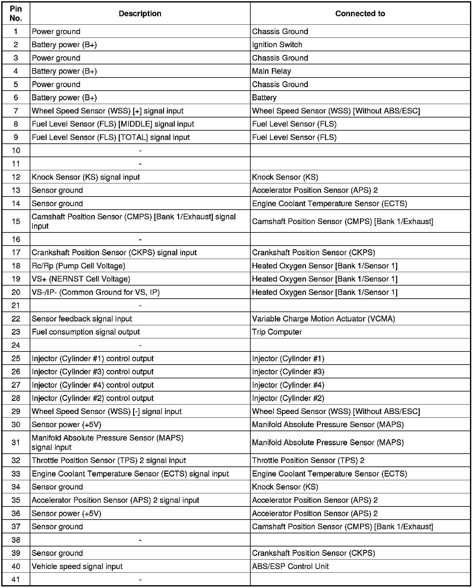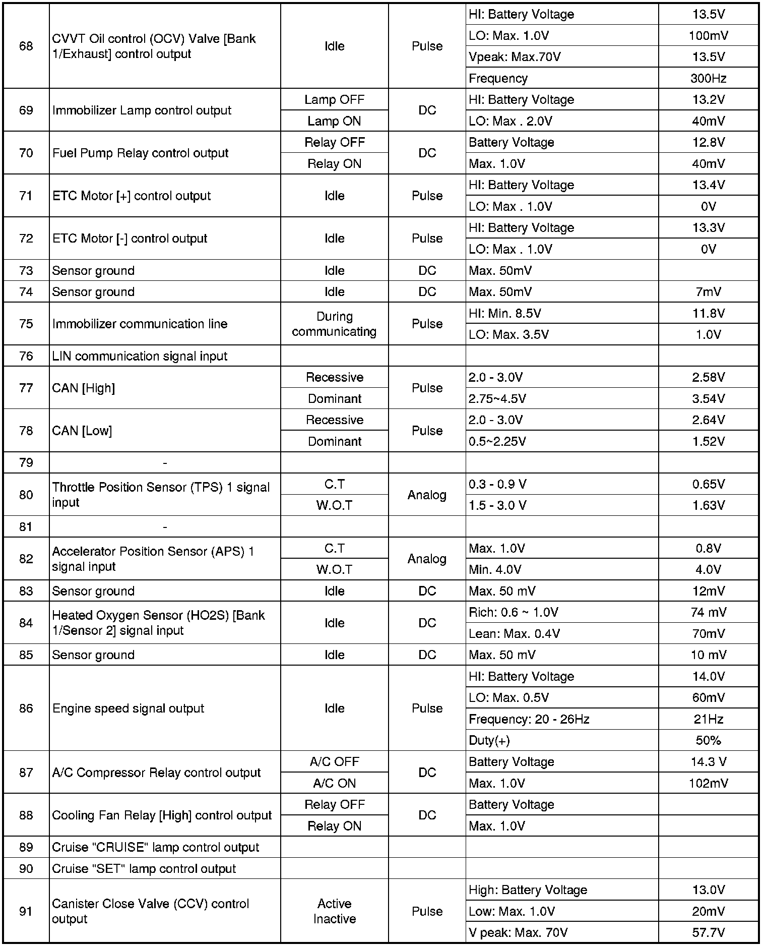 ECM Terminal And Input/Output signal