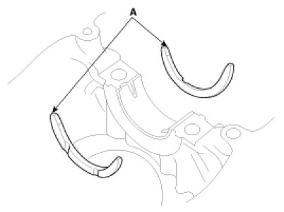 Install the 2 thrust bearings(A) under the No.3 journal position of the cylinder block with the oil grooves facing outward.