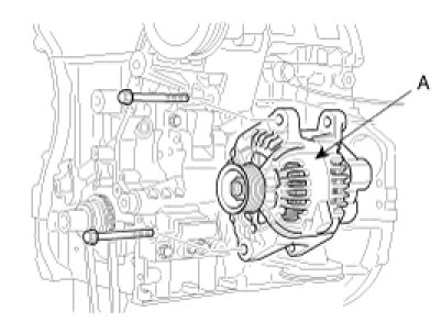 9. Remove the alternator (A).