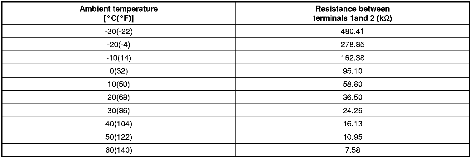 3. Check the resistance of ambient temperature sensor between terminals 1 and 2 whether it is changed by changing of the ambient temperature.
