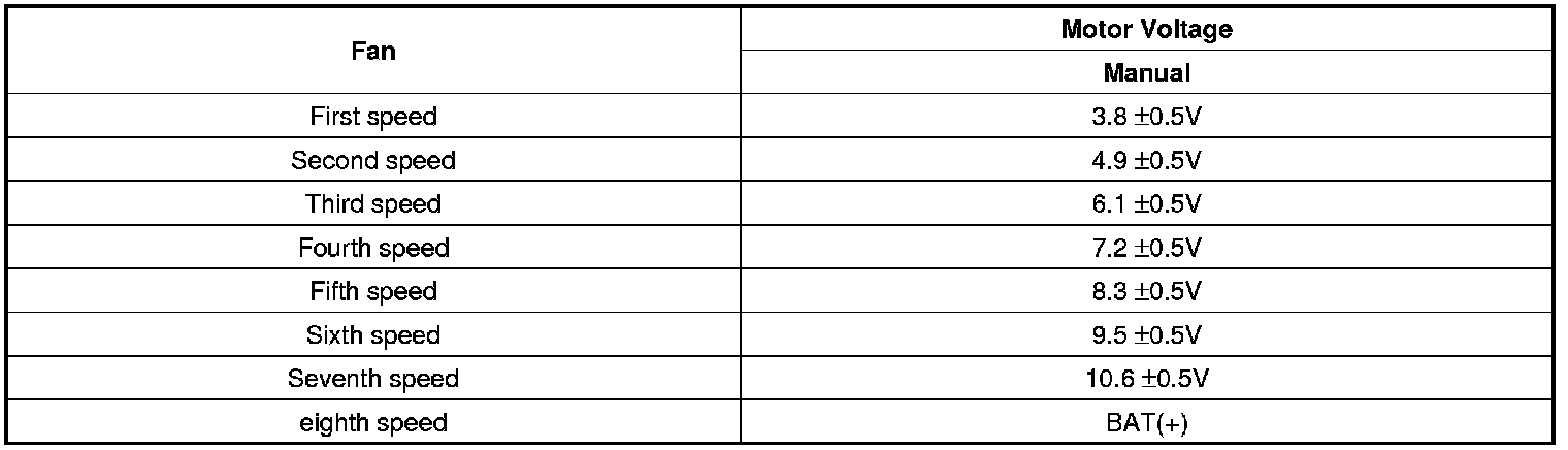 2. Manually operate the control switch and measure the voltage of blower motor between pin 1 and 2.