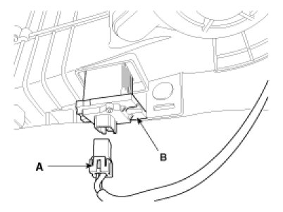 2. Disconnect the power mosfet connector (A) at the connecting part between heater and blower unit.