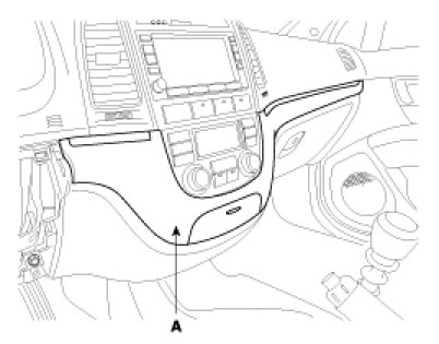 2. Remove the crash pad center lower garnish(A).