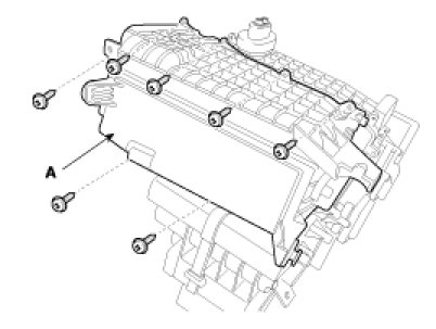 13. Loosen a screw and then remove the heater unit cover(A).
