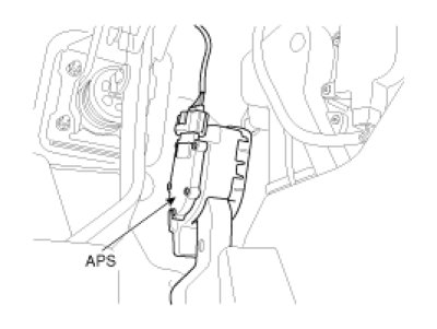 Accelerator Position Sensor (APS) is installed on the accelerator pedal module and detects the rotation angle of the accelerator pedal. The APS is one of the most important sensors in engine control system, so it consists of the two sensors which adapt individual sensor power and ground line. The second sensor monitors the first sensor and its output voltage is half of the first one. If the ratio of the sensor 1 and 2 is out of the range (approximately 1/2), the diagnostic system judges that it is abnormal.