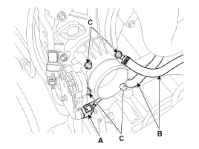 5. Remove the installation bolts (C), and then remove the ETC module from the engine.