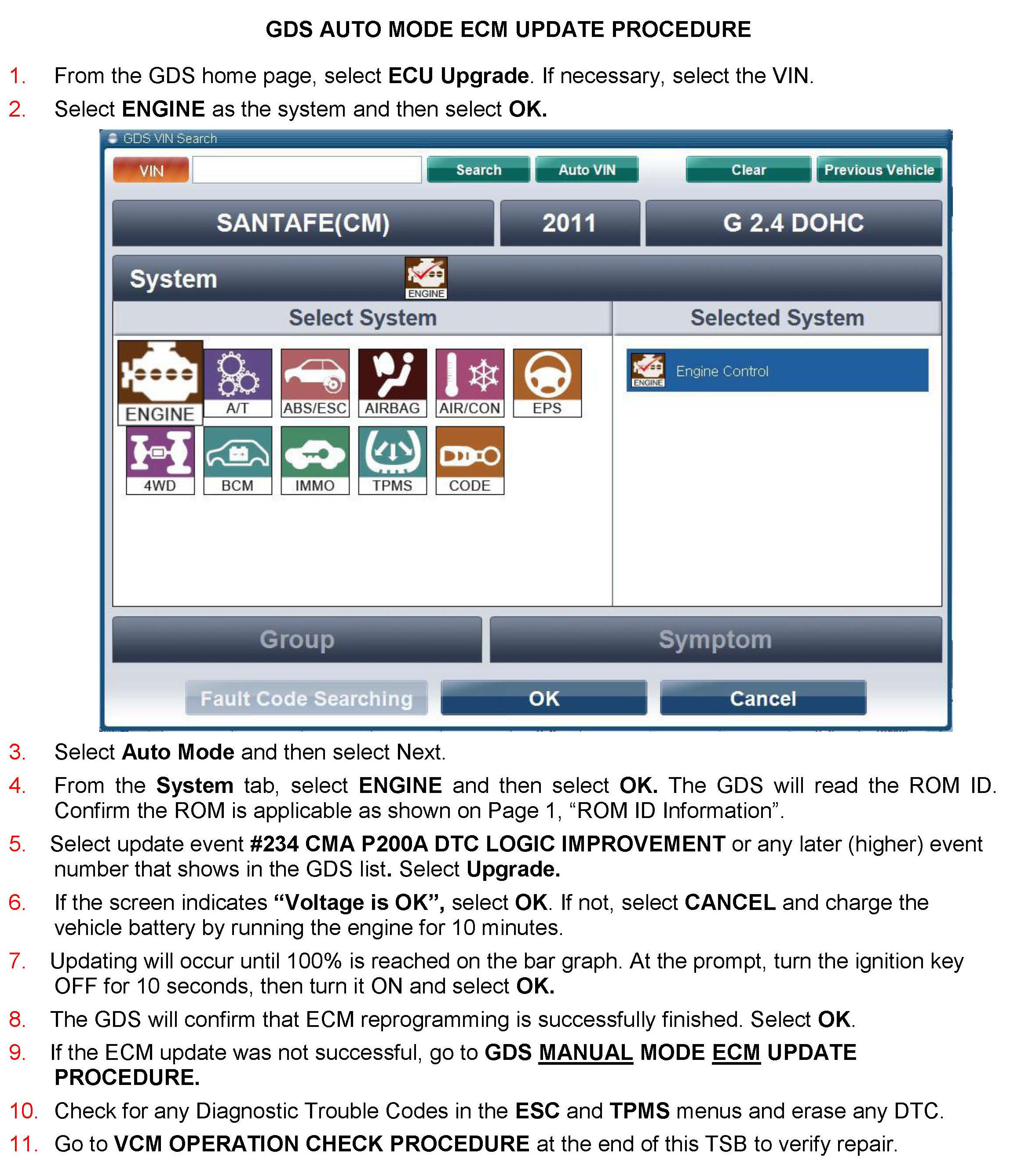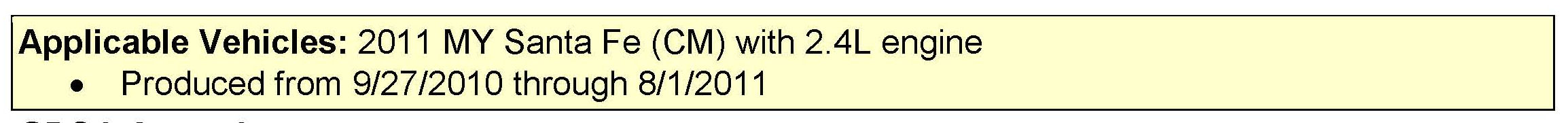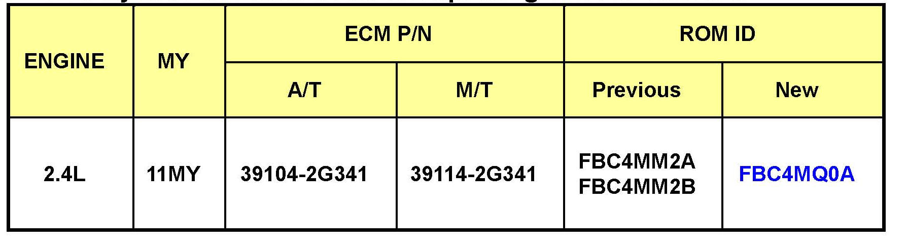 This bulletin provides a procedure to update the ECM for 2011 Santa Fe 2.4L (CM) vehicles with revised logic for Diagnostic Trouble Code P200A (Intake Manifold Runner Performance - Bank 1).