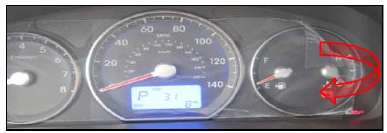 3. Allow 2~3 minutes time to pass for the black lines to dissipate. If black lines (distortion) are still present, have the instrument cluster replaced under normal warranty.
