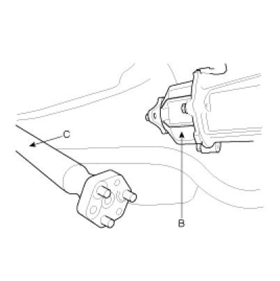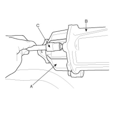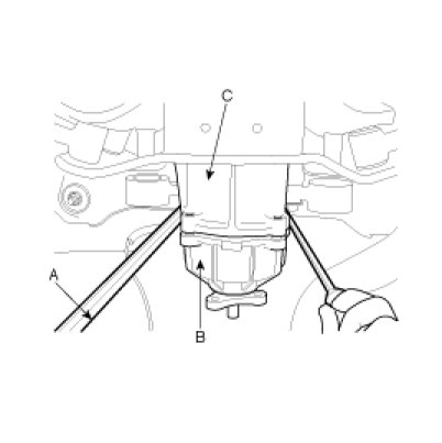 5. Using a flat tool(A), separate the 4WD coupling assembly(B) from the rear differential carrier(C).