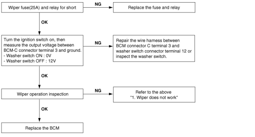 When washer switch is on, wiper does not work.