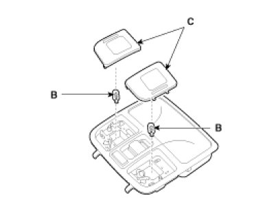 4. When replacing the bulb only, release the lens (C) cover from the roof without removing the overhead console lamp assembly.