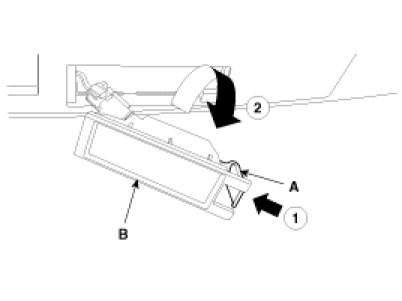 2. Remove the license lamp lens (B) by pressing the clip (A).