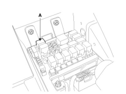 5. Disconnect the battery (-) cable, and then install the fuel pump relay (A).