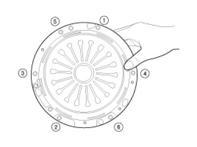 CAUTION: When installing the clutch cover, tighten the bolts in diagonal directions not to be bent or twisted.