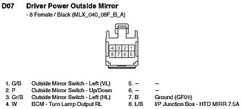 D07 Driver Power Outside Mirror: