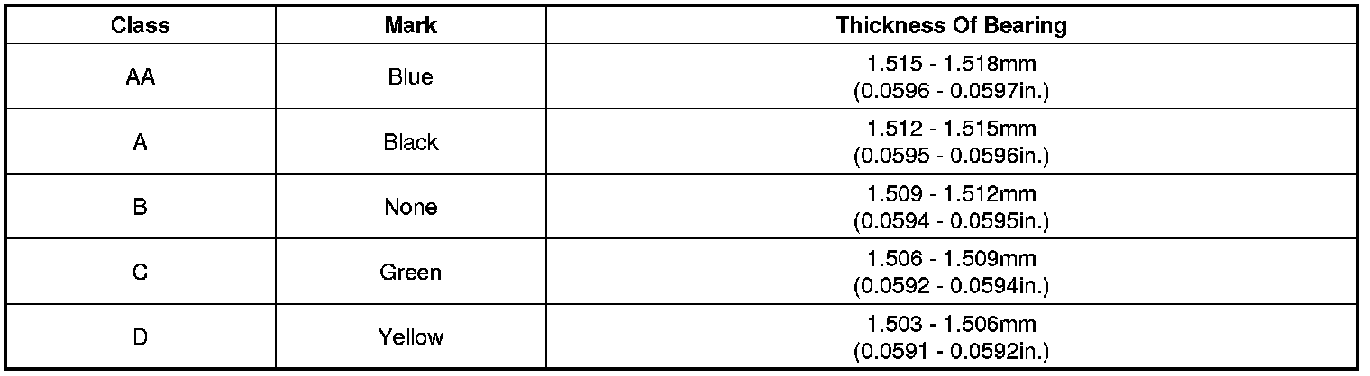 (7) If the plastigage shows the clearance is still incorrect, try the next larger or smaller bearing (the color listed above or below that one), and check clearance again.
