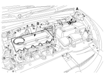 14. Connect the PCV hose (A) and exhaust OCV connector (B).