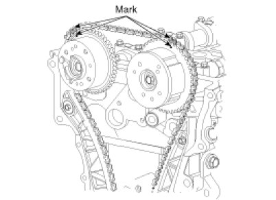 Before removing the timing chain, mark the timing chain with an identification based on the location of the sprocket because the identification mark on the chain for TDC (Top Dead Center) can be erased.
