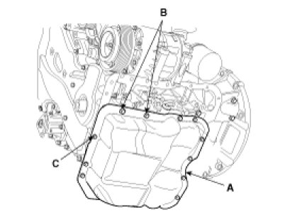 C. Install the oil pan (A).