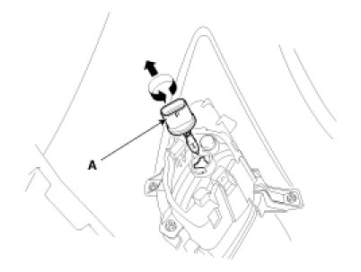 3. Remove the front fog lamp (A) by turning in the counterclockwise direction after disconnecting the connector.