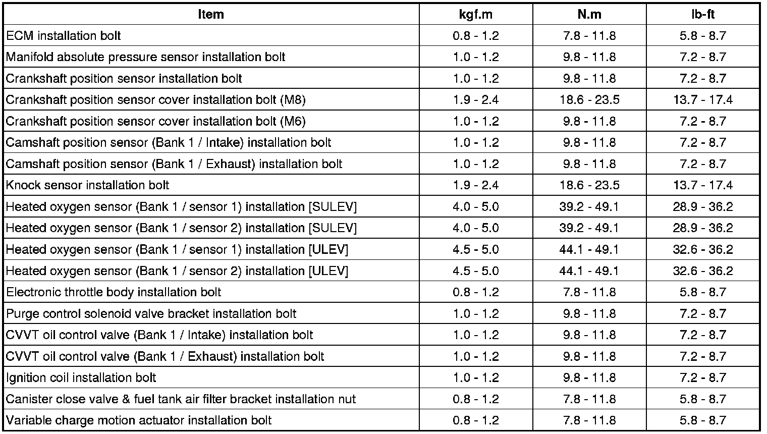 Tightening Torques